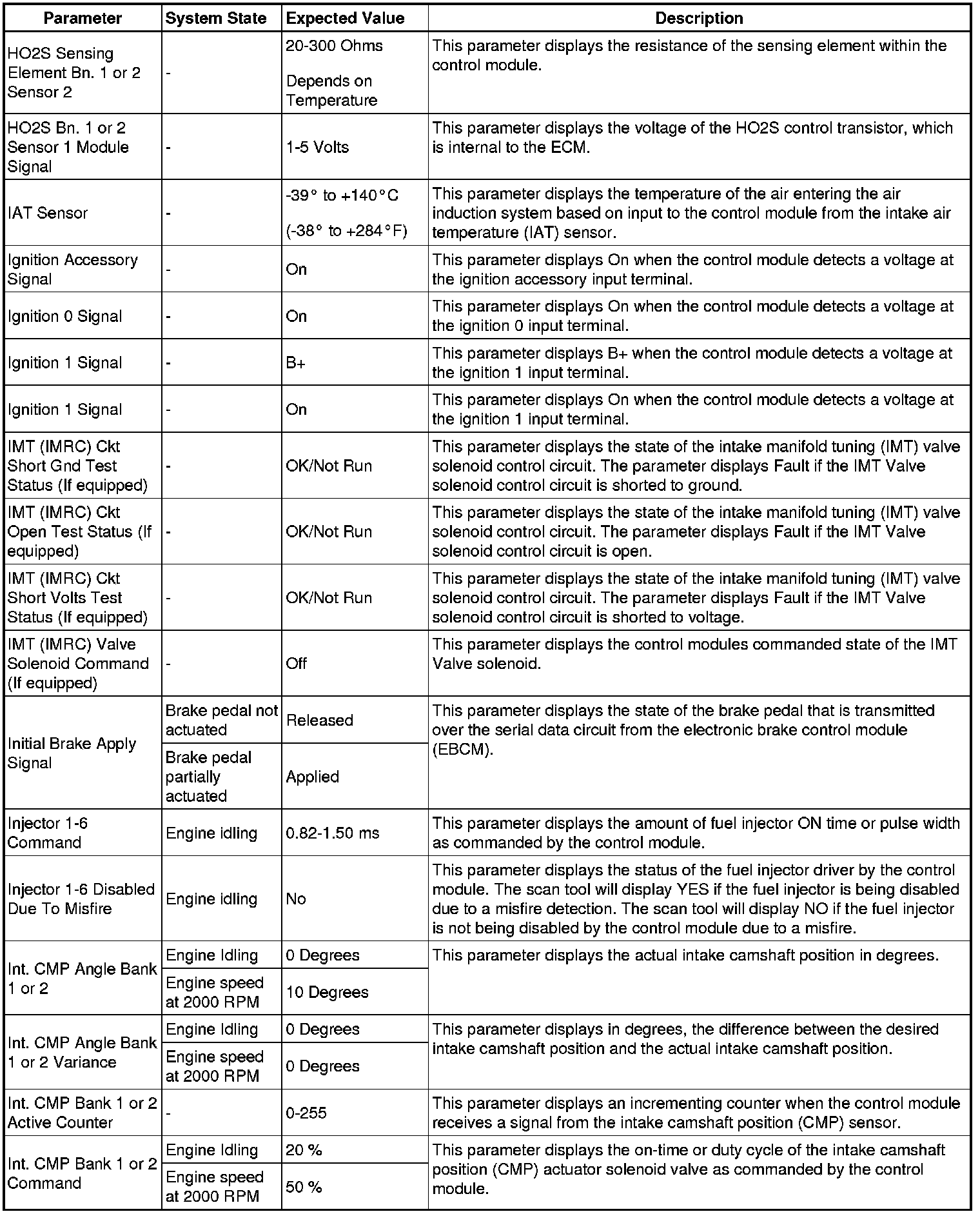 The Engine Control Module Scan Tool Data List contains all engine-related parameters that are available on the scan tool. The list is arranged in alphabetical order. A given parameter may appear in any one of the data lists, and in some cases may appear more than once, or in more than one data list in order to group certain related parameters together.