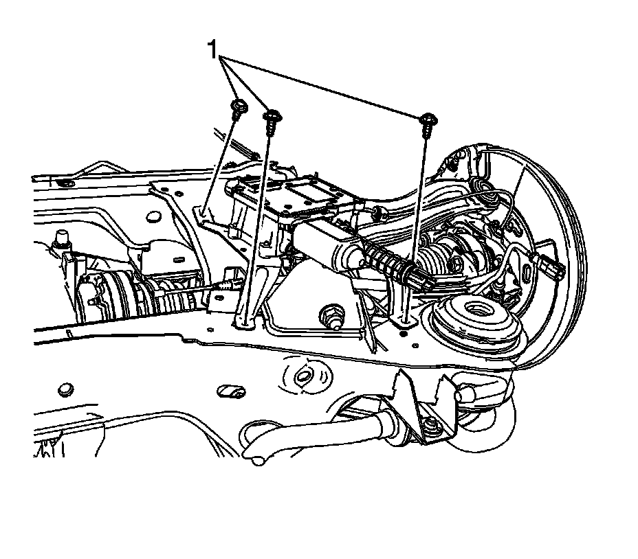 3. Install the electronic park brake module bracket bolts (1) and tighten to 25 Nm (18 lb ft).