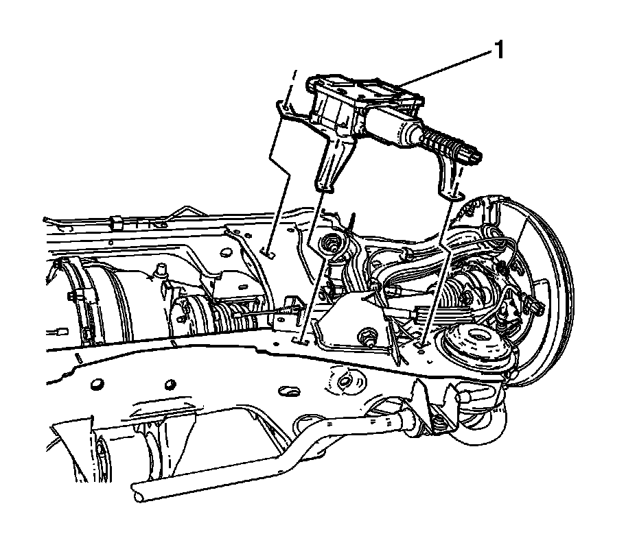 2. Install the electronic park brake module assembly (1) to the rear frame assembly.
