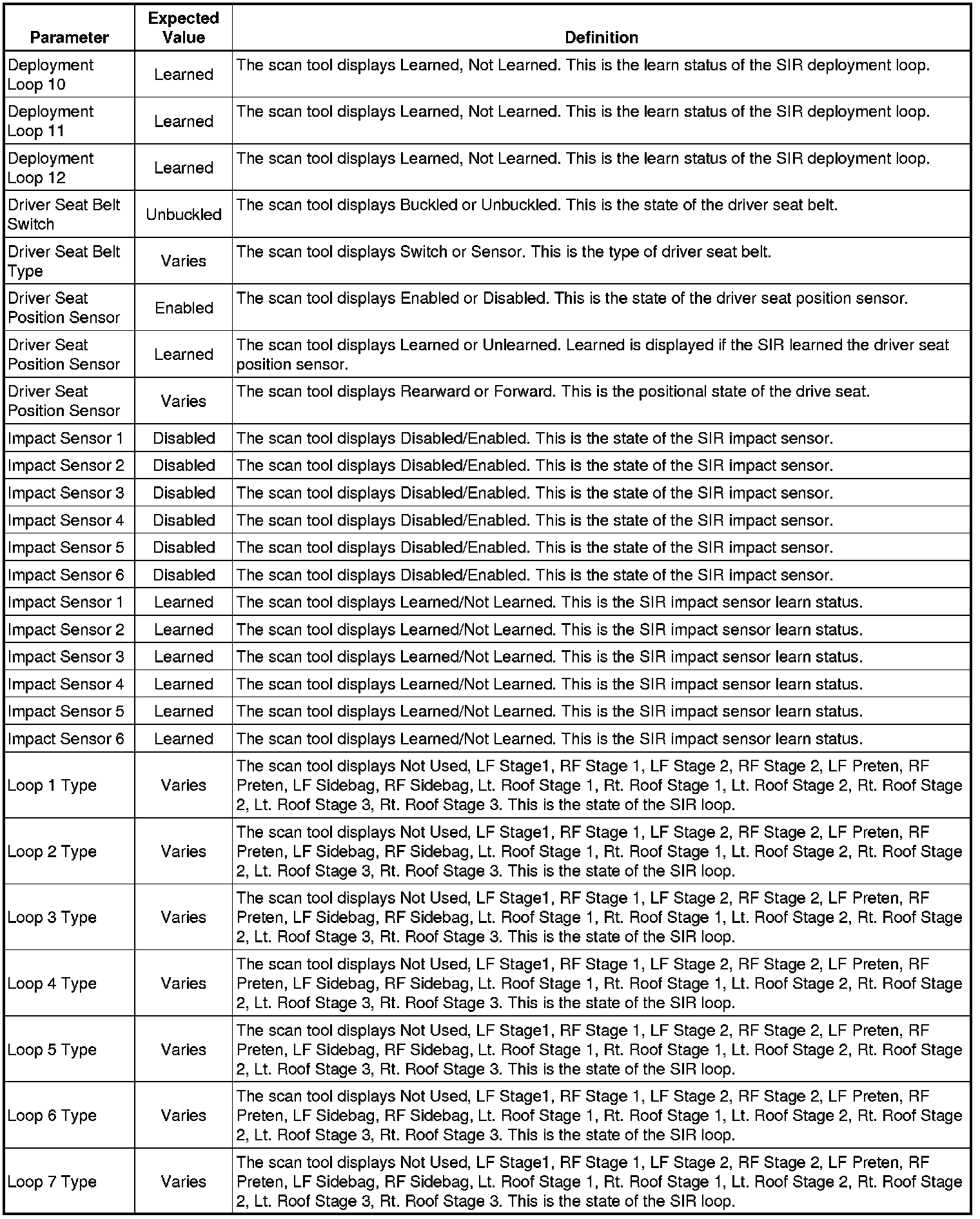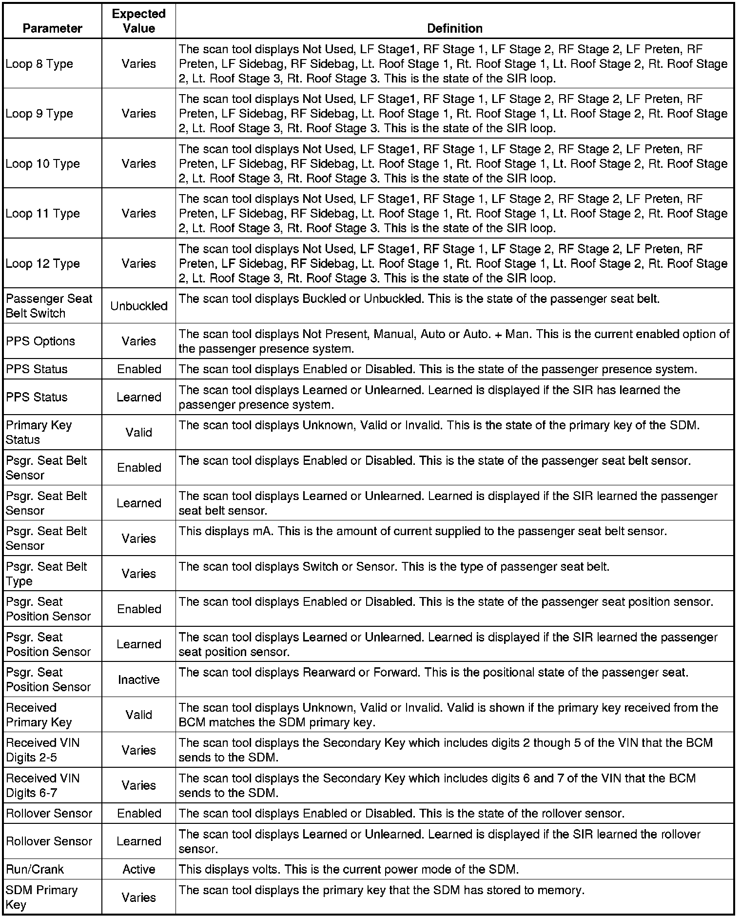 Inflatable Restraint Sensing and Diagnostic Module Scan Tool Information