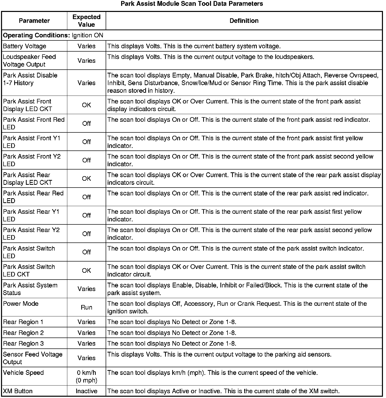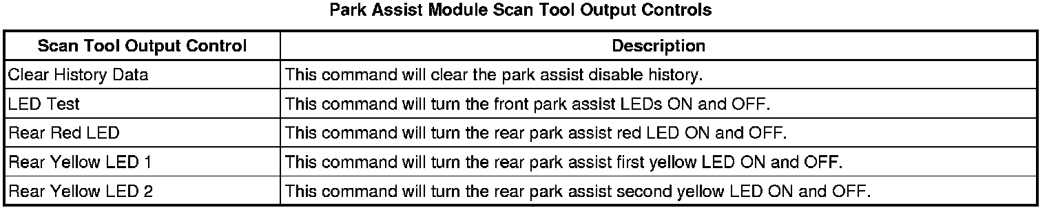 Rear Object Alarm Module Scan Tool Information