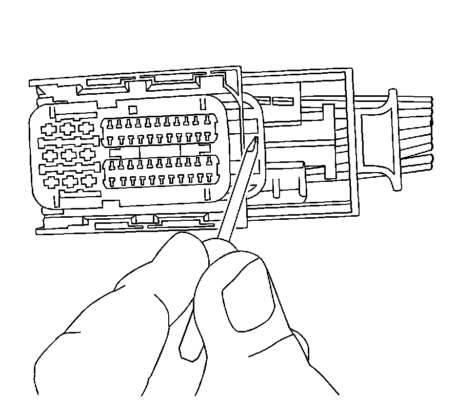 8. Use the J 38125-24 or the J 38125-560 tool to release the terminals by inserting the tool into the terminal release cavity. See the release tool cross reference in the Reference Guide of the J-38125 to ensure that the correct release tool is used.