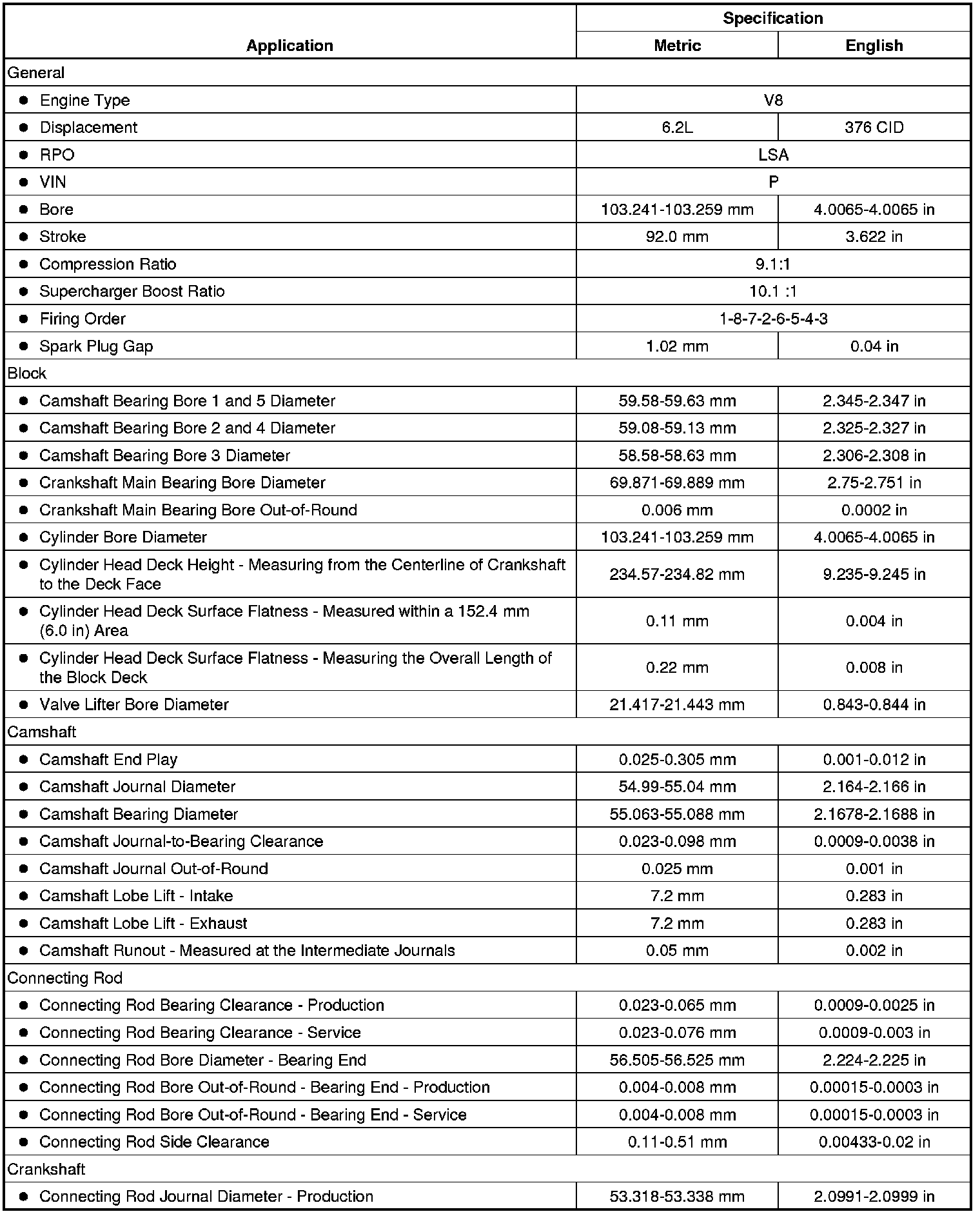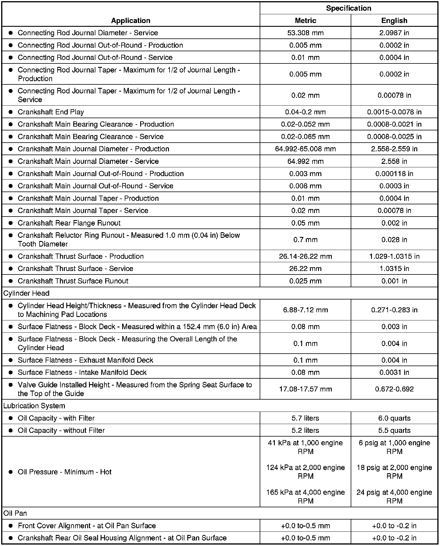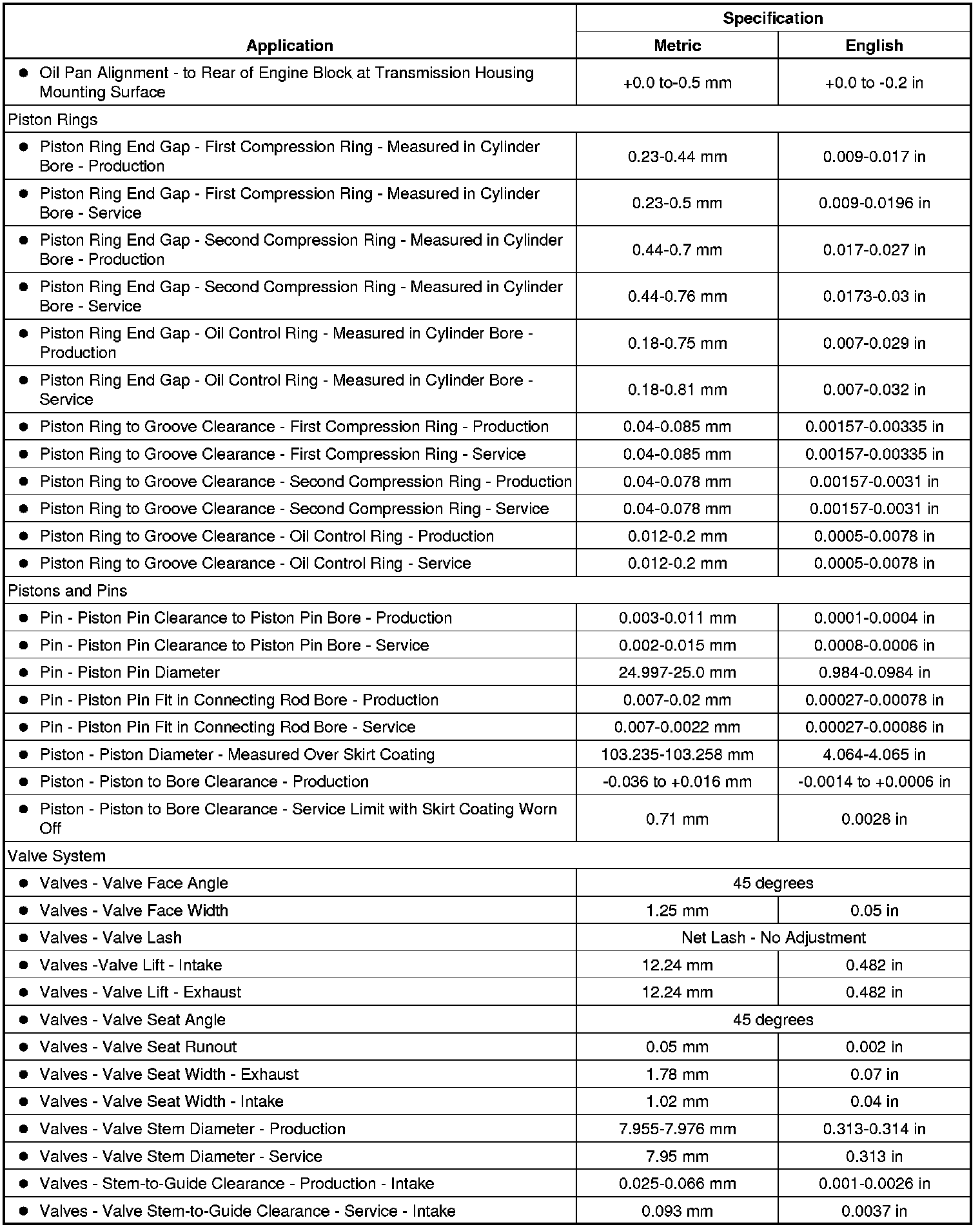 Engine Mechanical Specifications