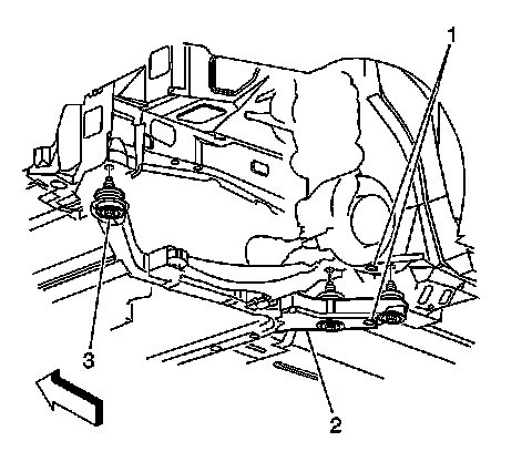 1. Install the control arms. Refer to Lower Control Arm Replacement (FE7) (Lower Control Arm Replacement (FE7))Lower Control Arm Replacement (FE1, FE3) (Lower Control Arm Replacement (FE1, FE3)).