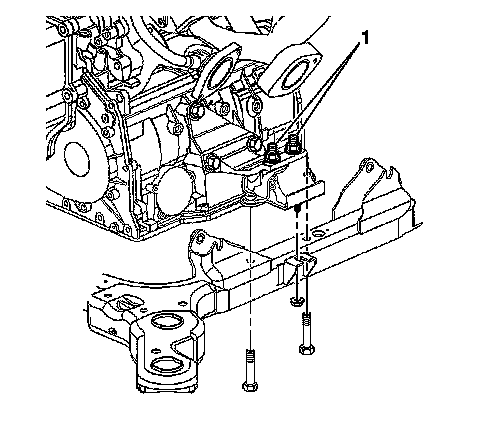 7. Install the fasteners in order to retain the rear transaxle mount (1) to the bracket.