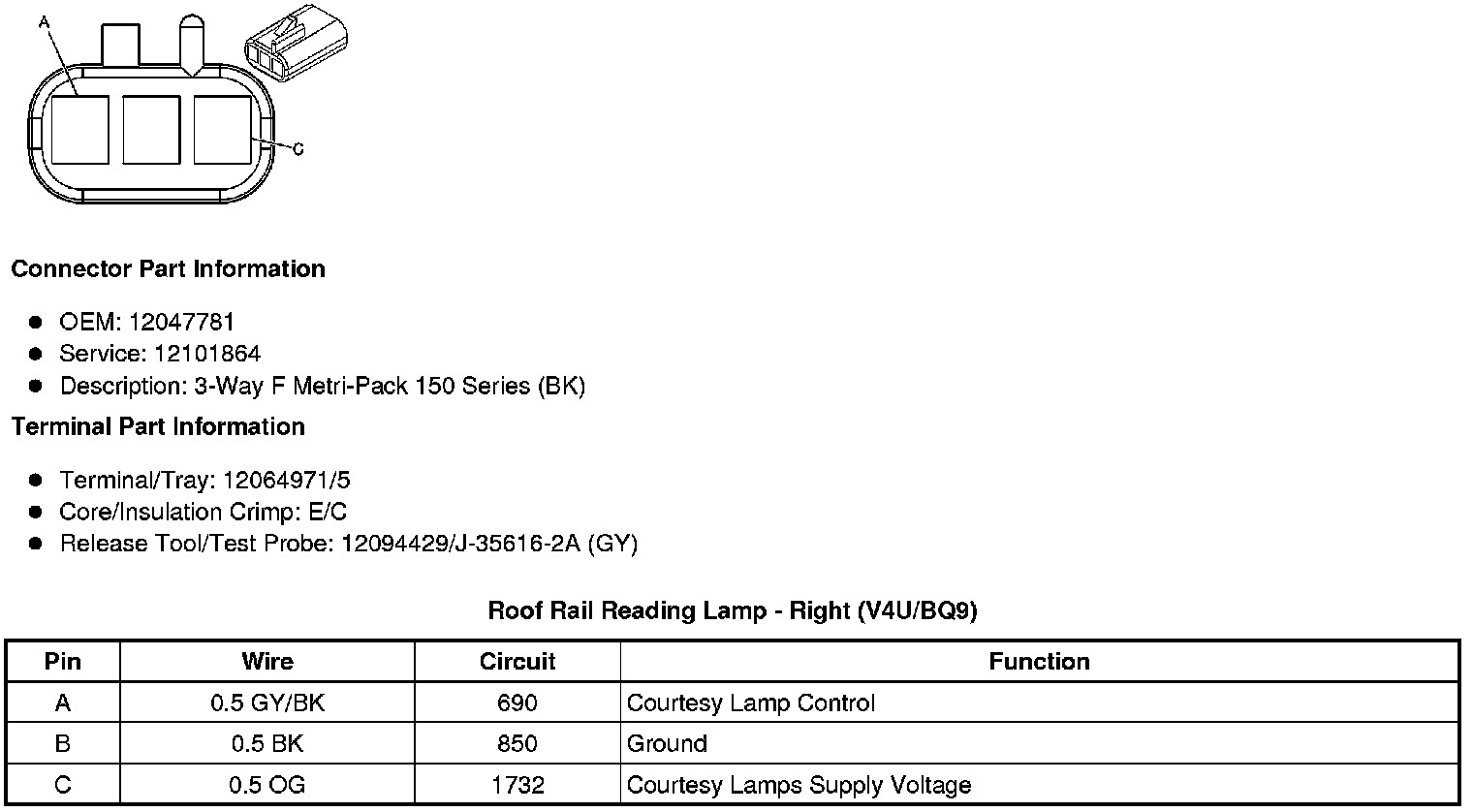 Roof Rail Reading Lamp - Right (V4U/BQ9)