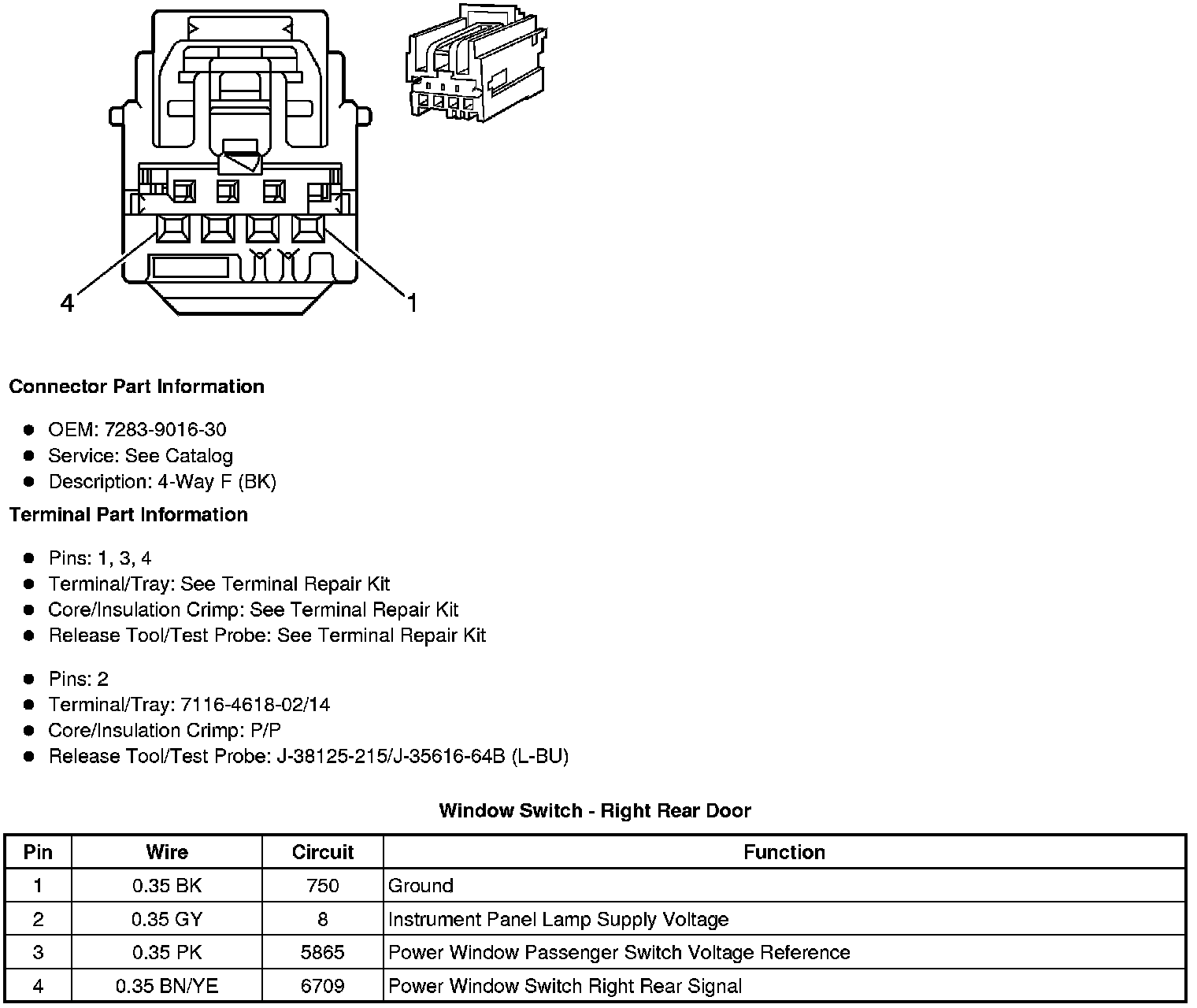Window Switch - Right Rear Door