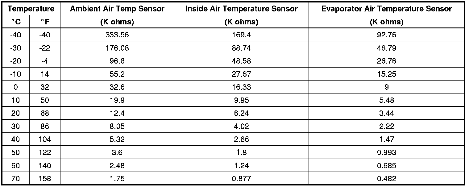 Sensor Resistance Table