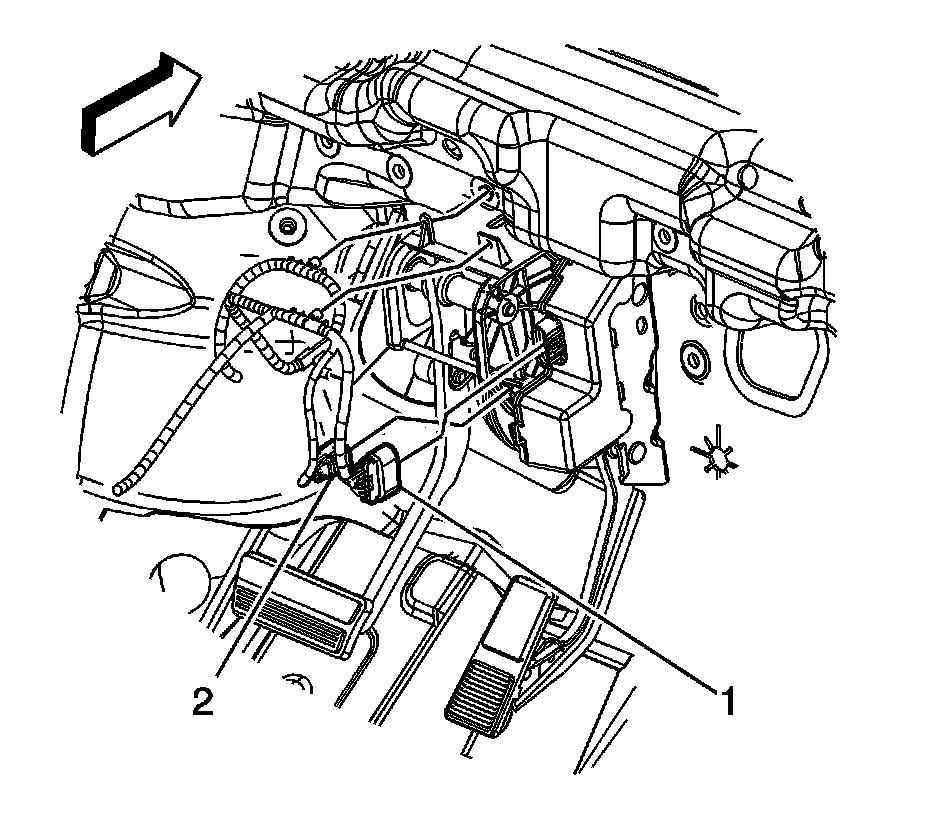 2. Disconnect the body harness electrical connector (1) from the accelerator pedal position (APP) sensor.