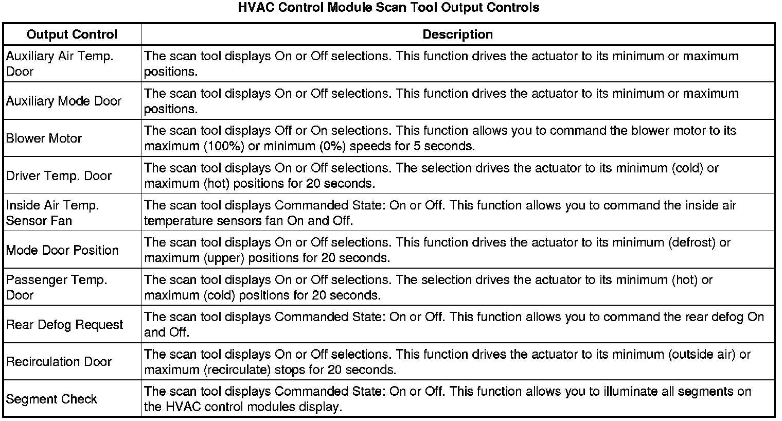 Heating, Ventilation and Air Conditioning Control Module Scan Tool Information
