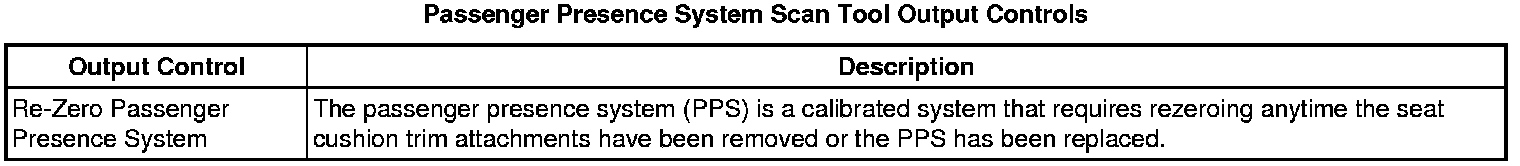 Inflatable Restraint Passenger Presence System Scan Tool Information