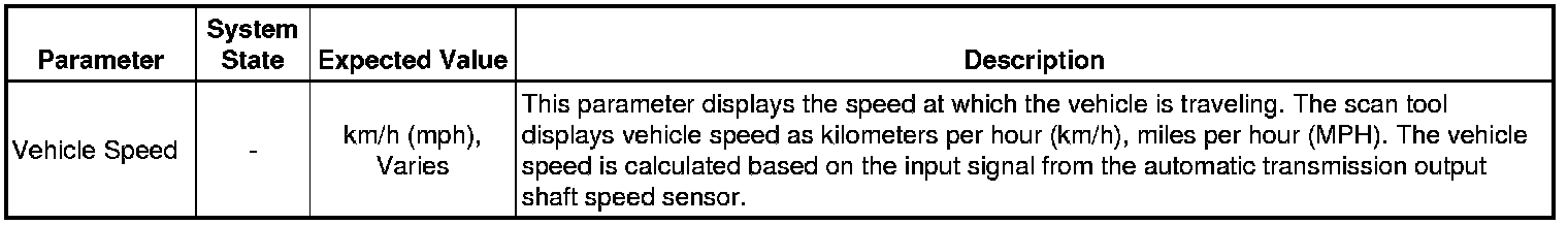 The scan tool values from a properly functioning transmission may be used for comparison with the transmission you are diagnosing. The values below represent a typical display recorded from a properly functioning system.