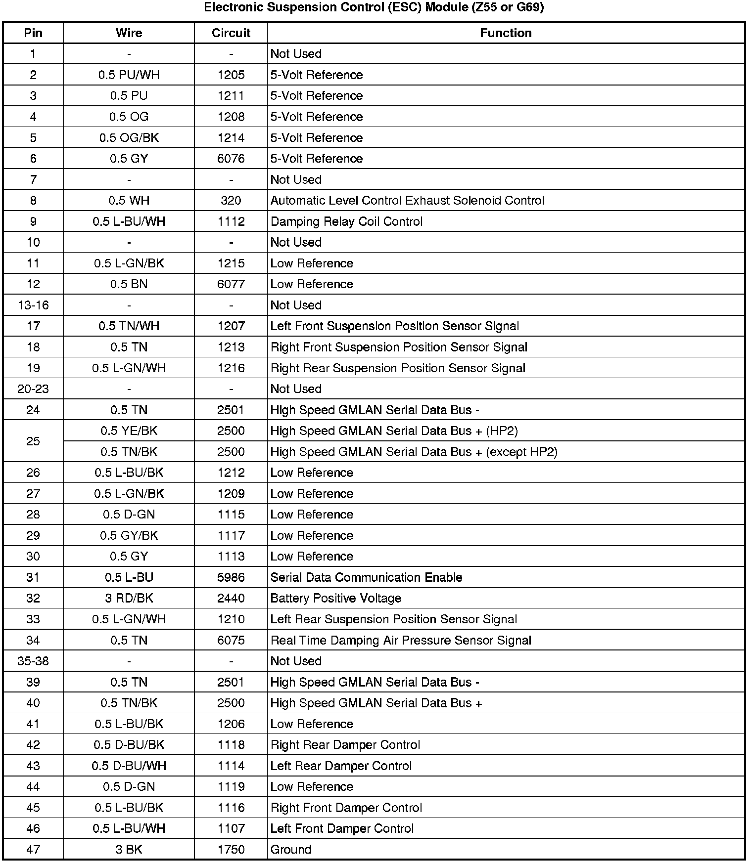 Electronic Suspension Control (ESC) Module (Z55 or G69)