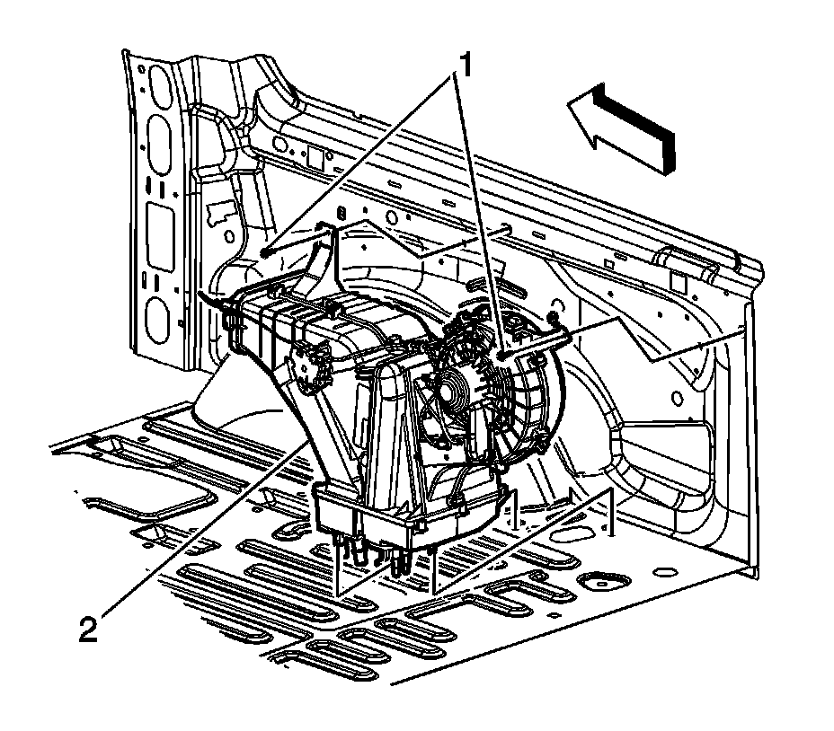 11. Remove the fasteners (1) retaining the auxiliary HVAC module to the vehicle.