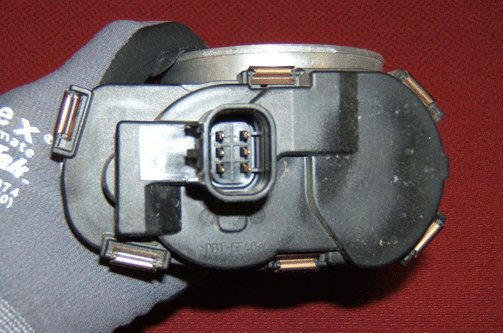 7. Hold the throttle body with your hand, so that the throttle position (TP) sensor cover is facing upward as shown.