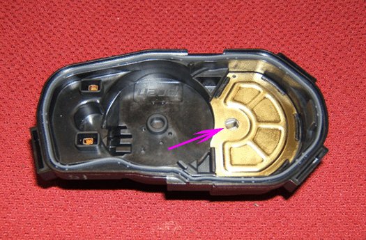 The three TP sensor cover alignment tabs are highlighted in white for identification purposes only.