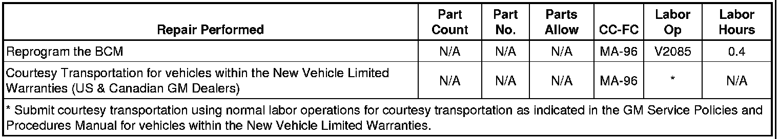 2. Reprogram the body control module (BCM). Refer to SI and Service Programming System (SPS) documentation for programming instructions, if required.