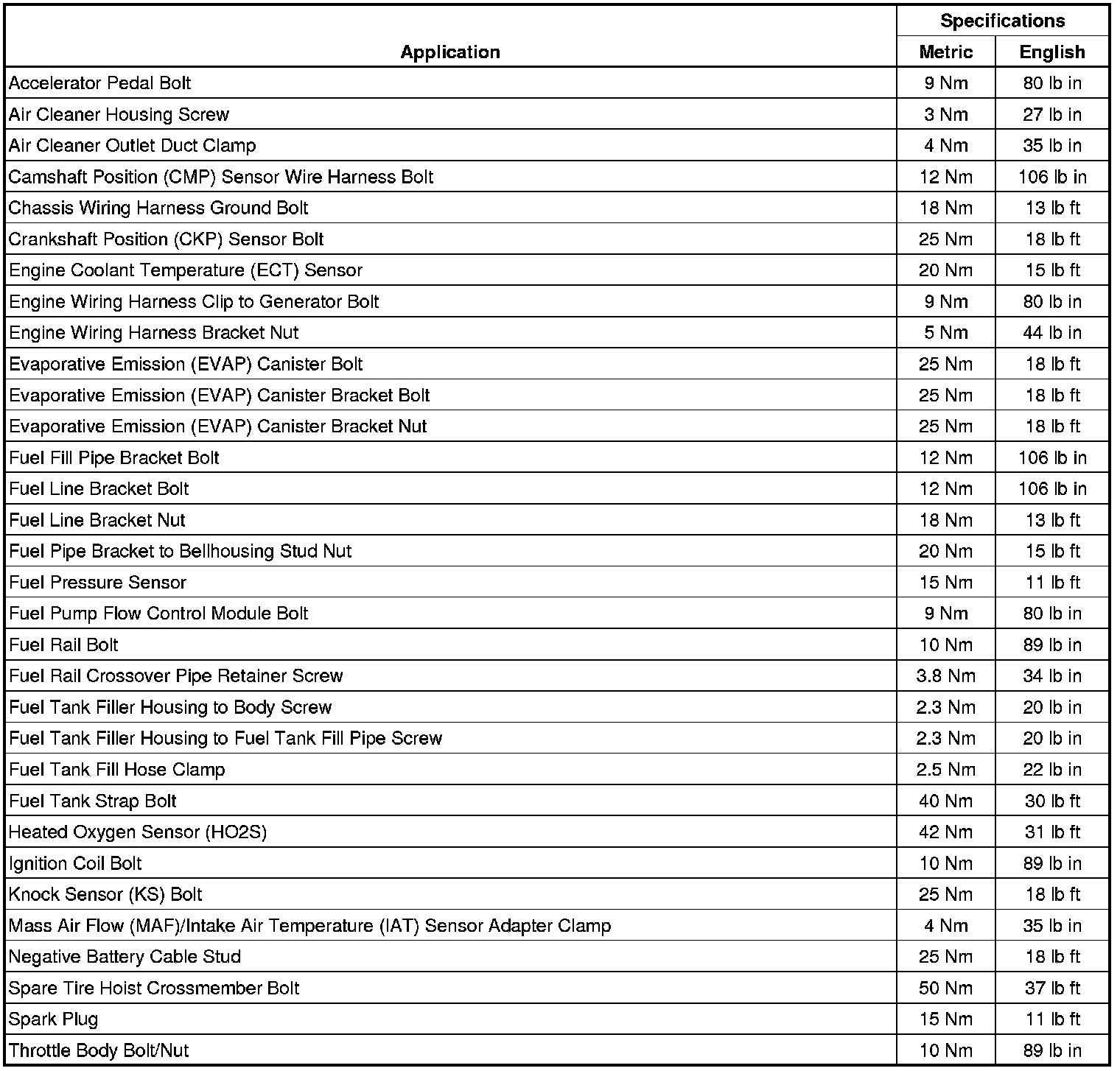 Fastener Tightening Specifications