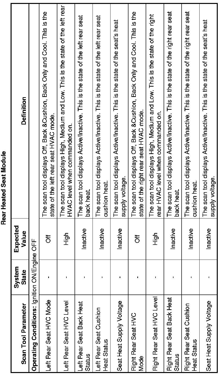 Rear Seat Heater Control Module Scan Tool Information