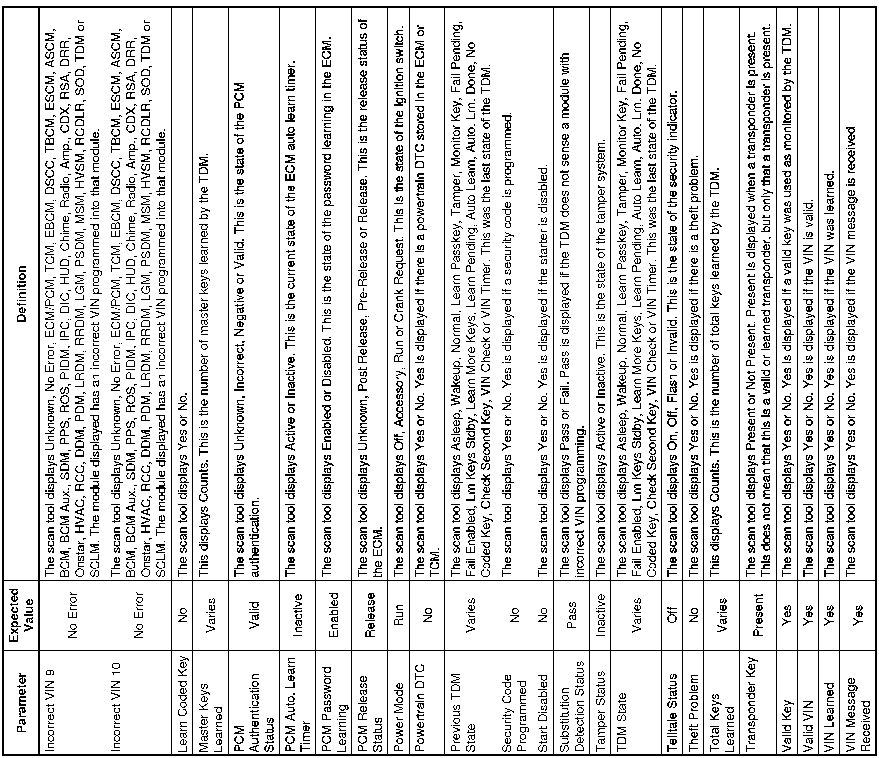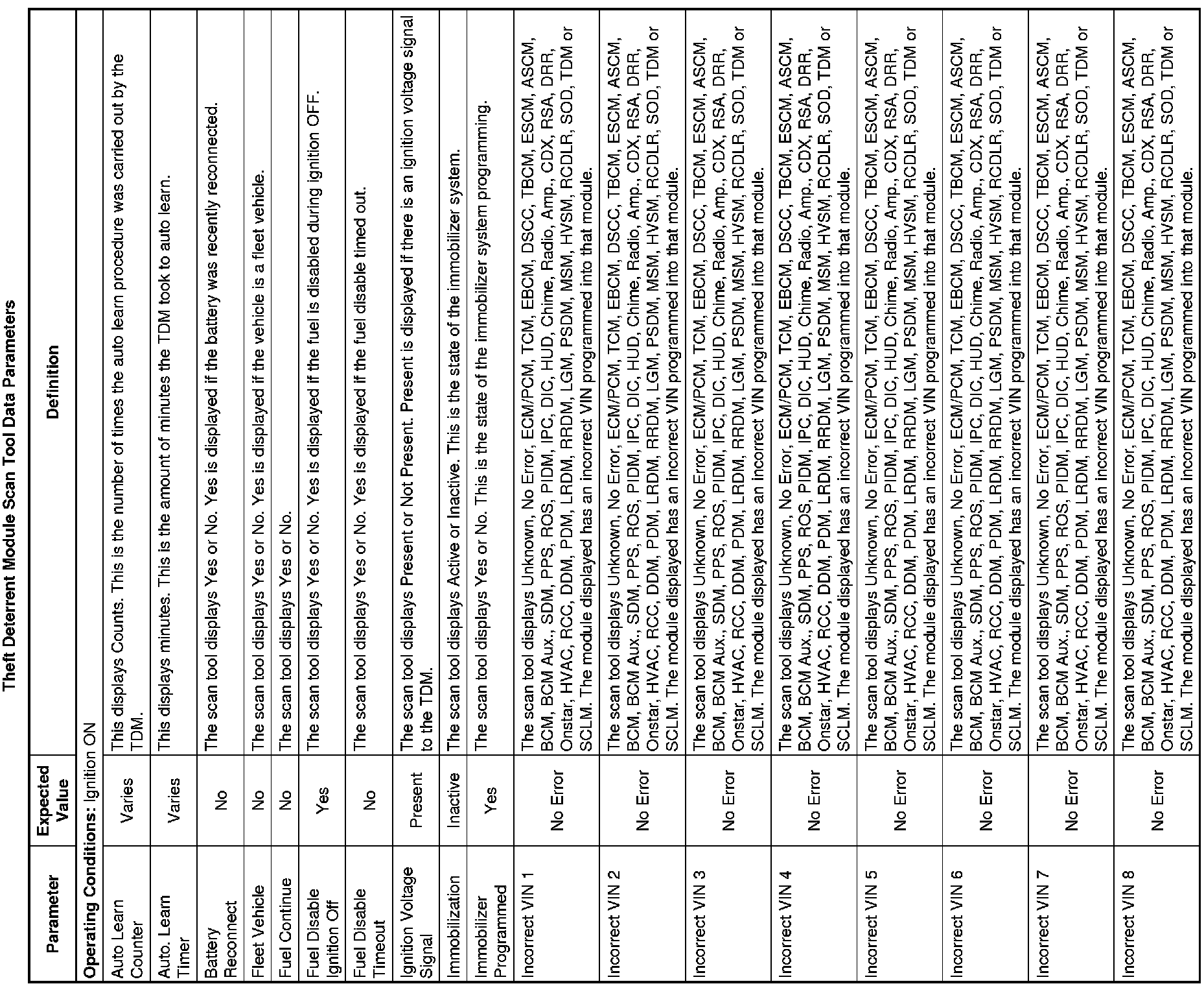 Theft Deterrent Module Scan Tool Information
