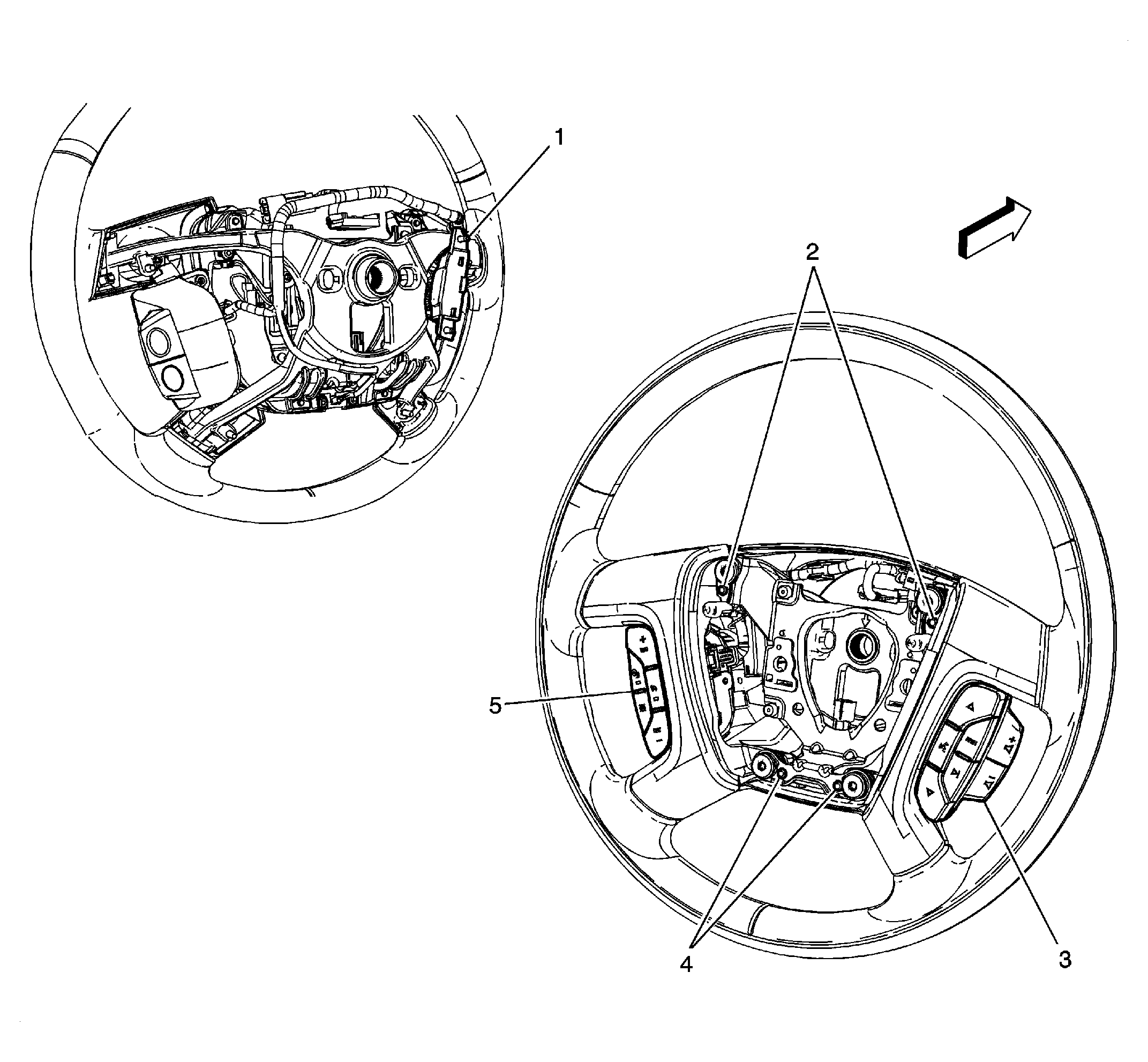 Heated Steering Wheel Control Module (1) In steering wheel. See Figure.