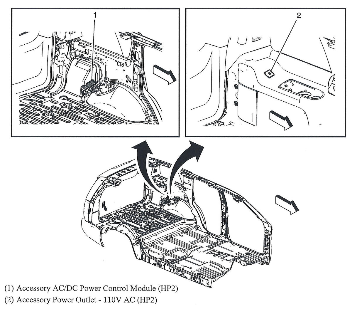 Accessory AC/DC Power Control Module Behind left rear quarterpanel. See Figure.