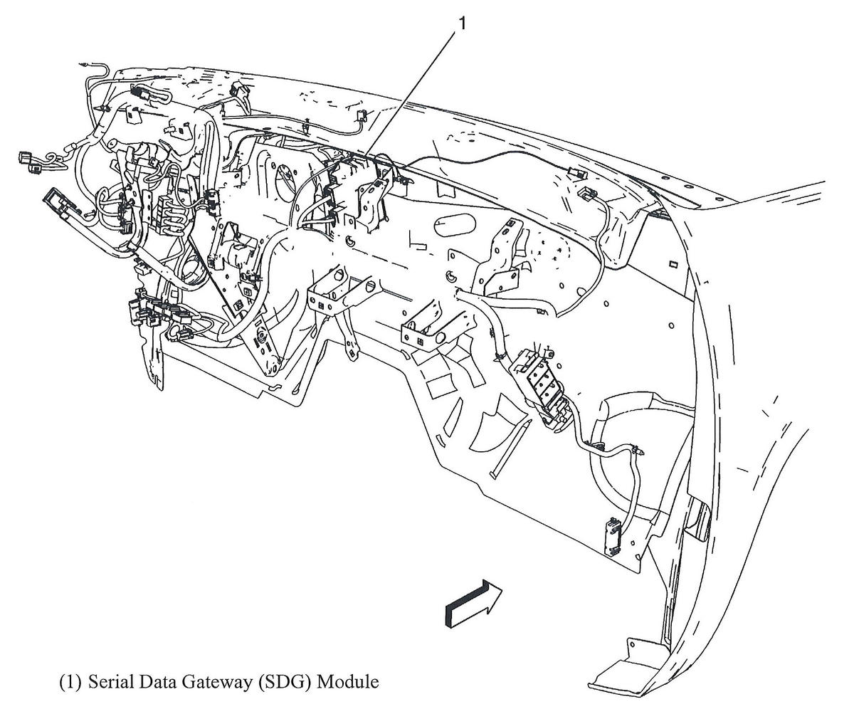 Serial Data Gateway (SDG) Module Left side of dash. See Figure.