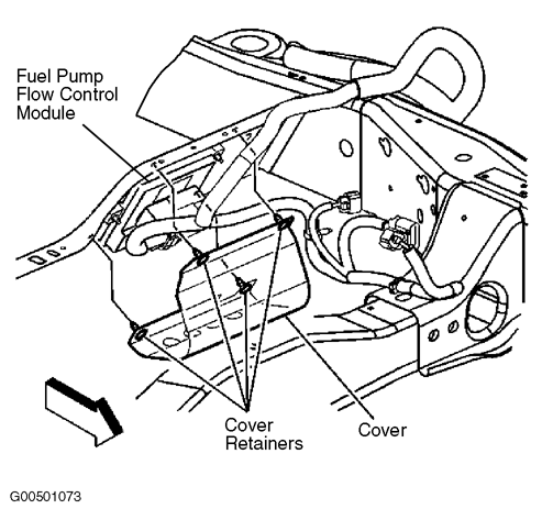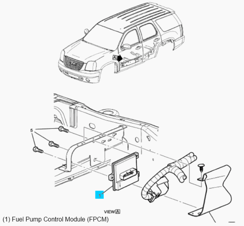 Fuel Pump Control Module (FPCM) On left front frame rail. See Figure.