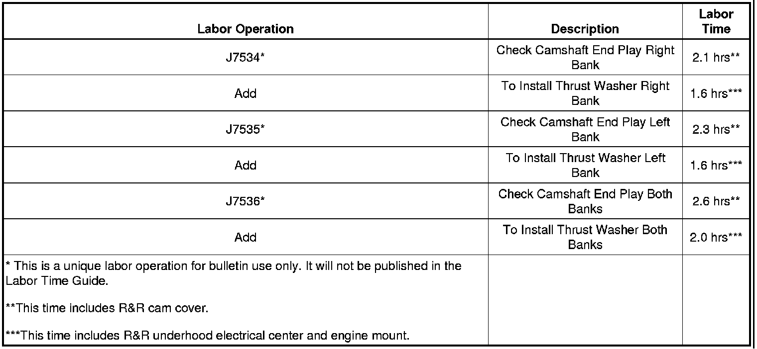Warranty Information (Thrust Washer Installation) (Chevrolet Camaro)
