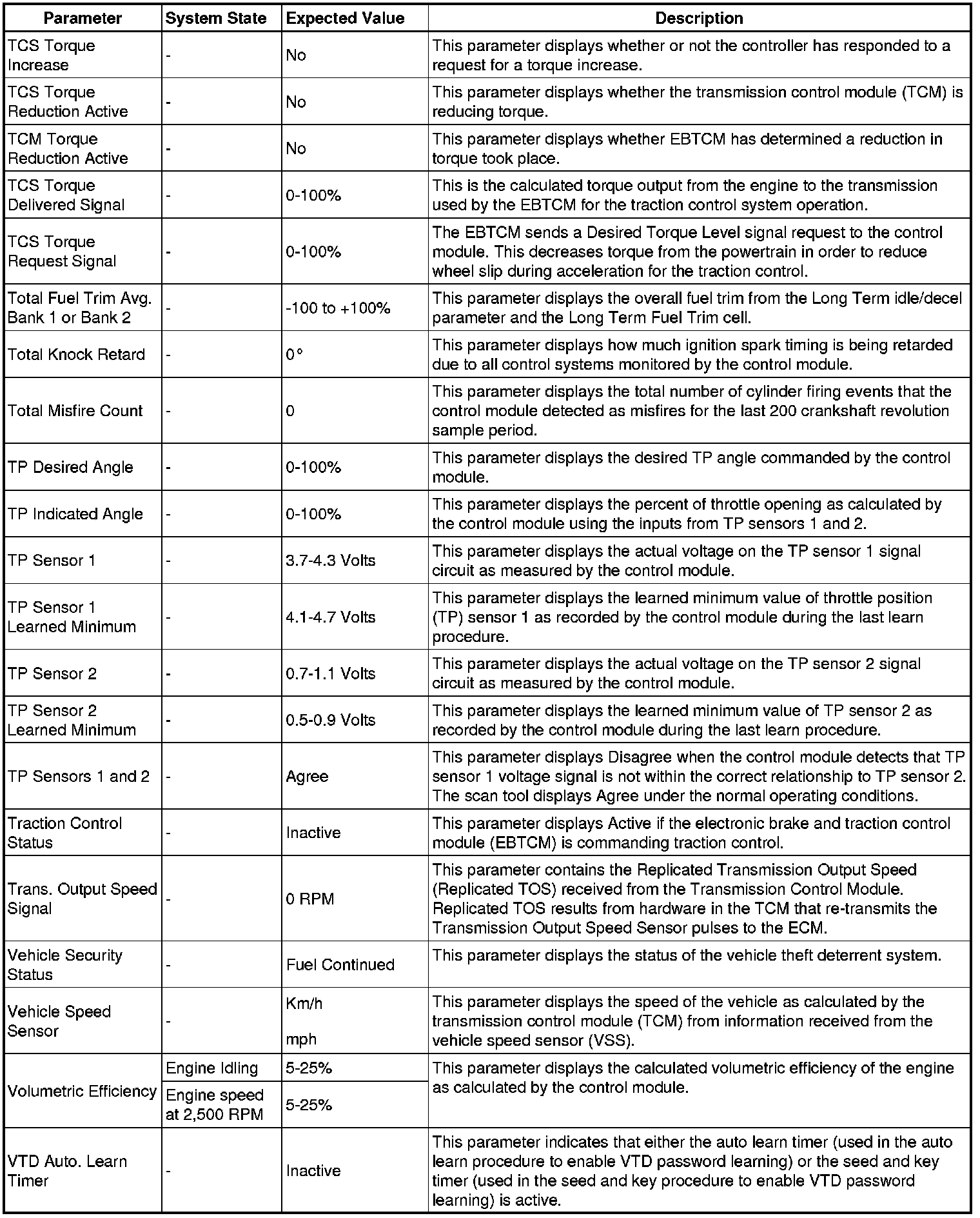 The scan tool values from a properly running engine may be used for comparison with the engine you are diagnosing. The Engine Scan Tool Data List represents values that would be seen on a normally running engine.