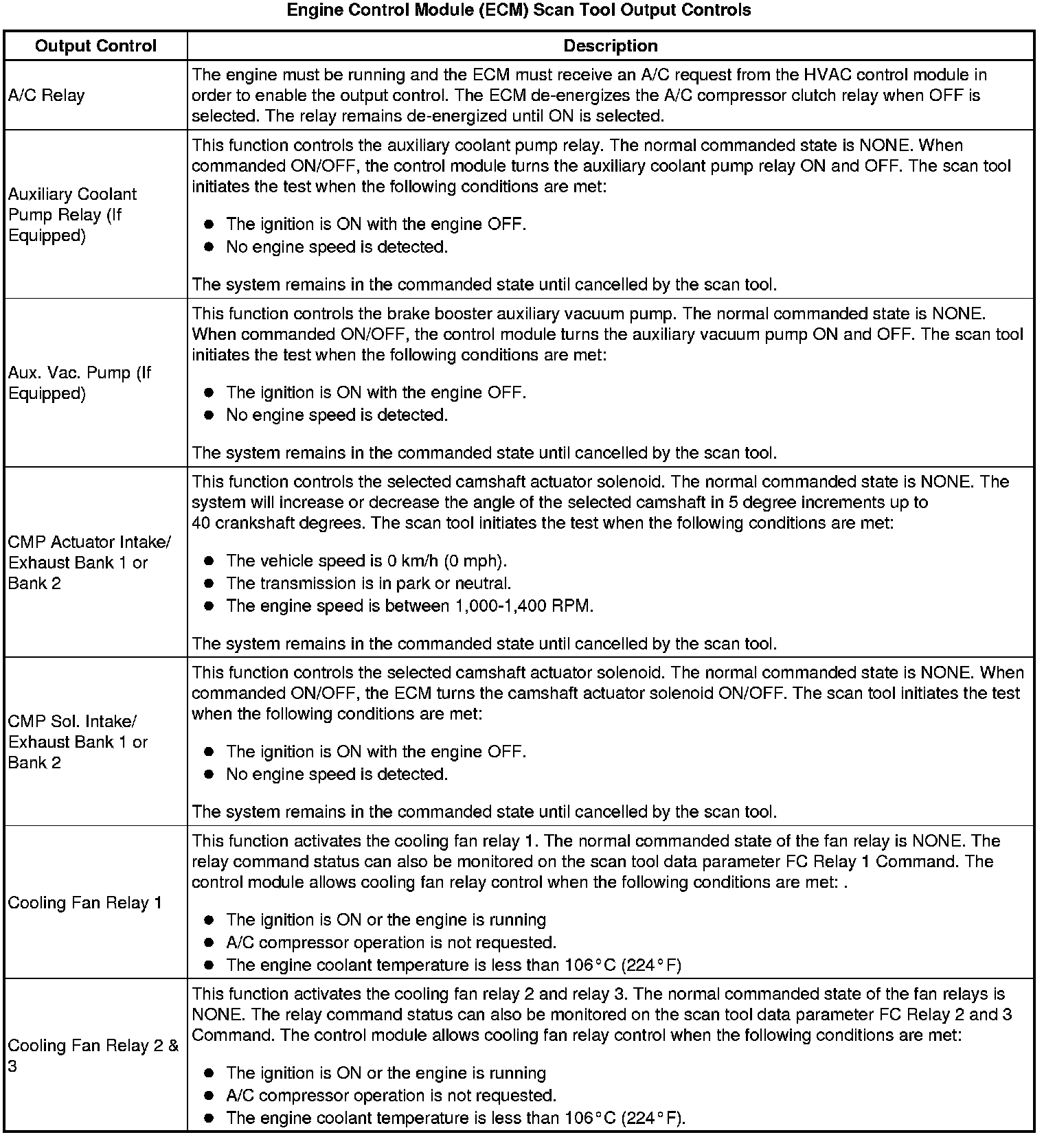 The Engine Control Module Scan Tool Data List contains all engine-related parameters that are available on the scan tool. The list is arranged in alphabetical order. A given parameter may appear in any one of the data lists, and in some cases may appear more than once, or in more than one data list in order to group certain related parameters together.