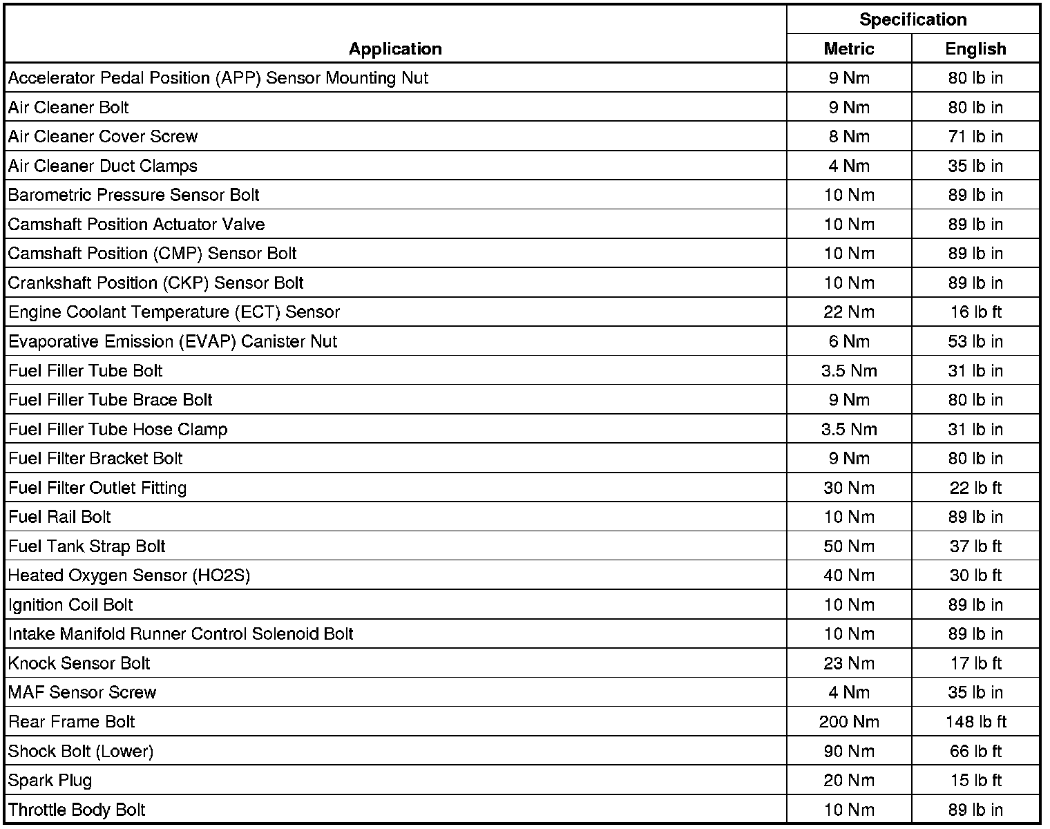 Fastener Tightening Specifications