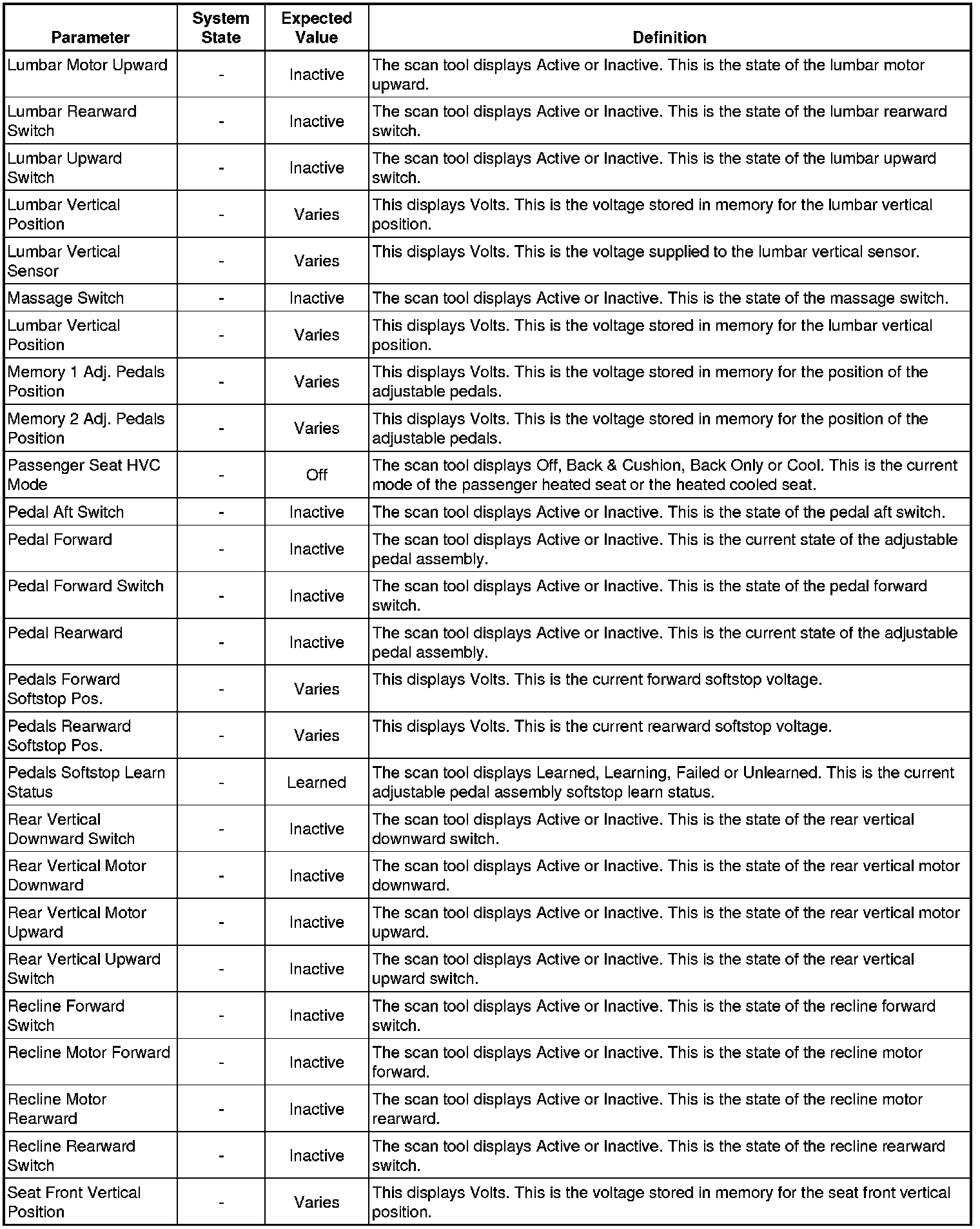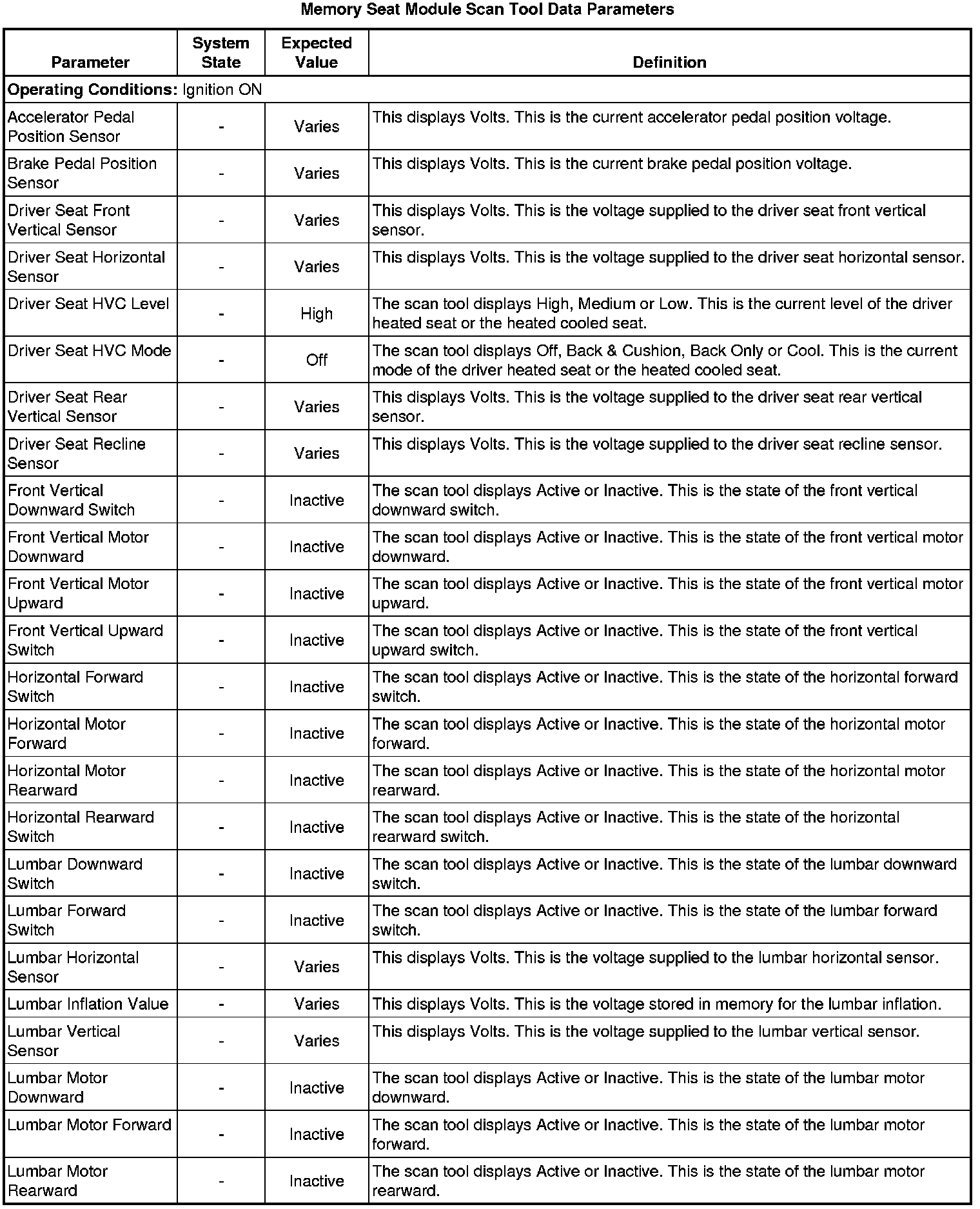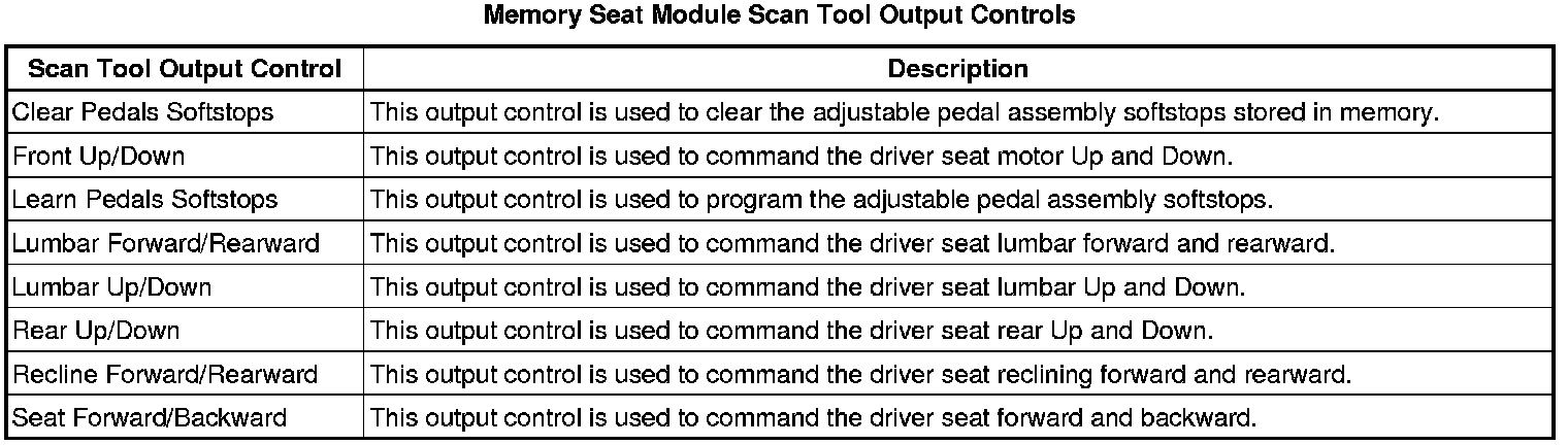 Driver Seat Adjuster Memory Module Scan Tool Information