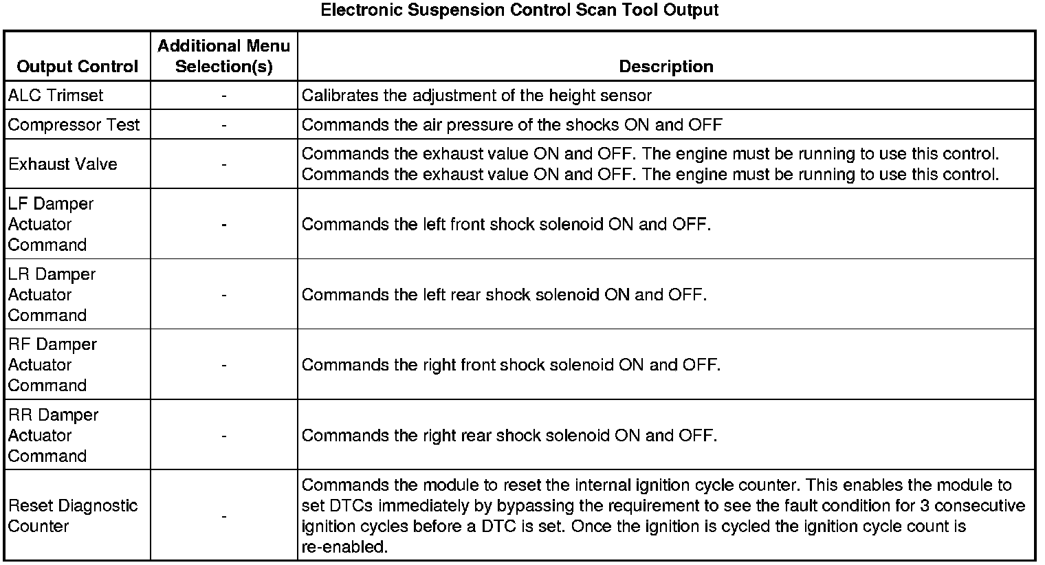 Electronic Suspension Control Module Scan Tool Information
