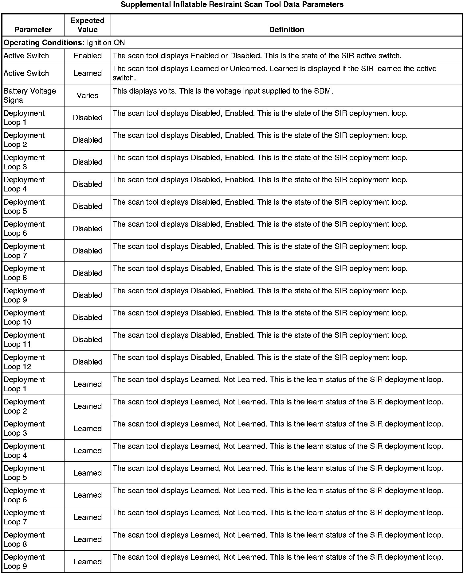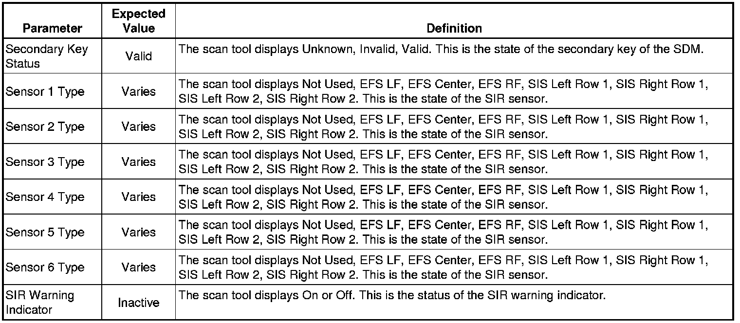 Inflatable Restraint Sensing and Diagnostic Module Scan Tool Information