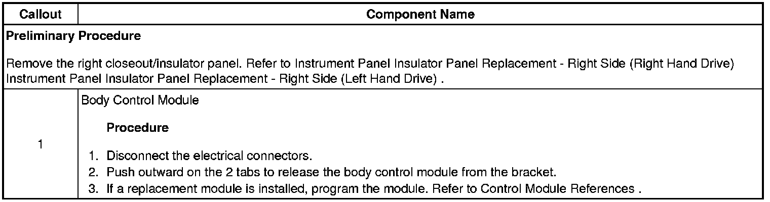 Body Control Module Replacement (Right Hand Drive)