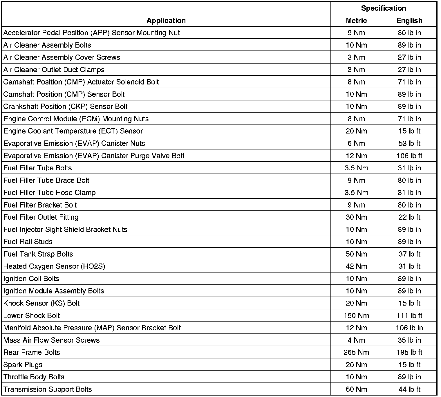 Fastener Tightening Specifications