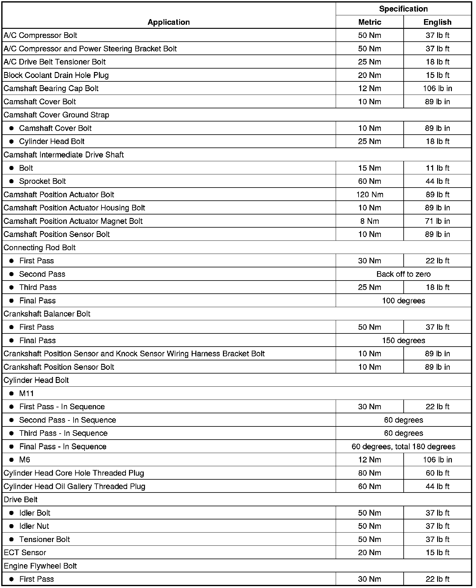 Fastener Tightening Specifications