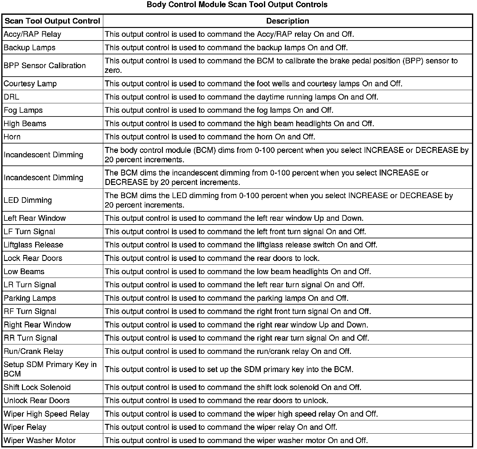 Body Control Module Scan Tool Information