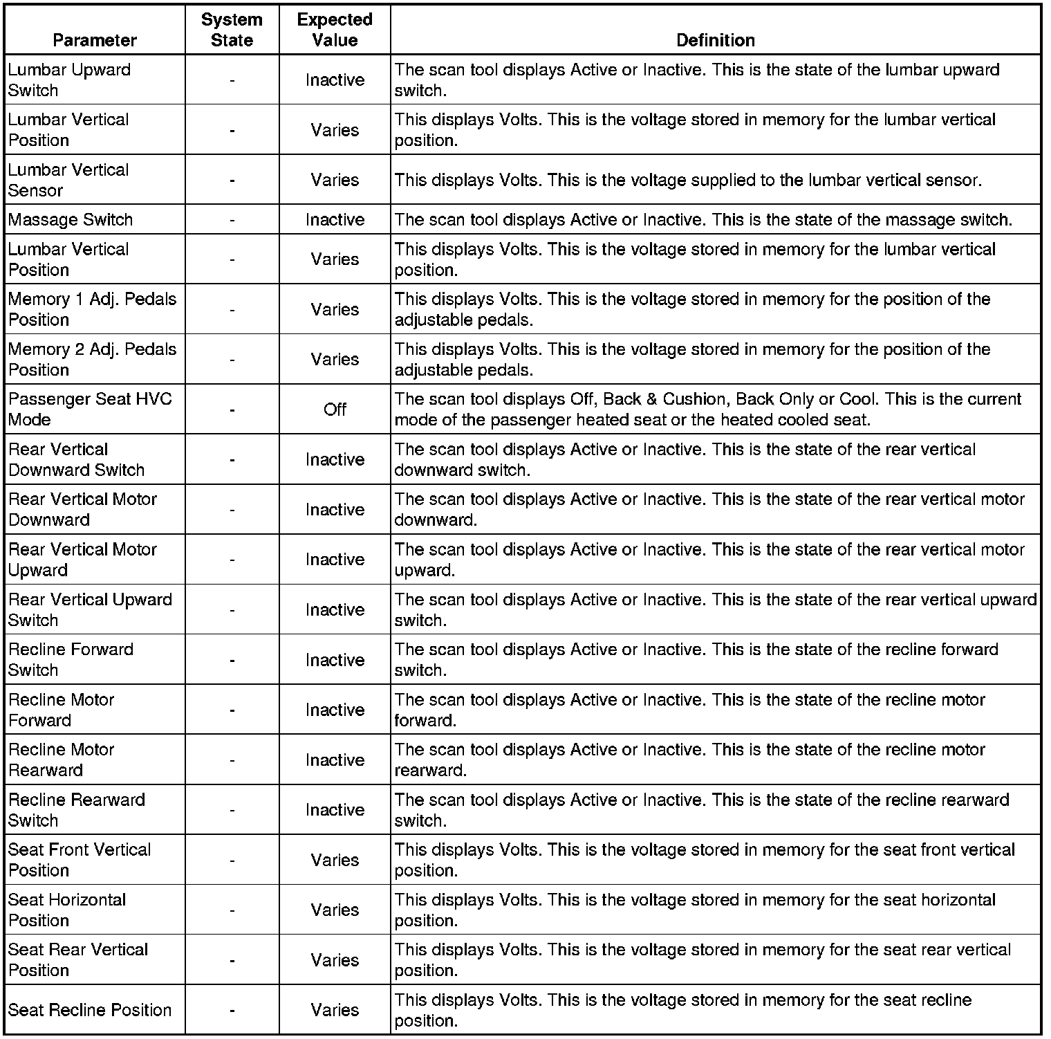 Driver Seat Adjuster Memory Module Scan Tool Information