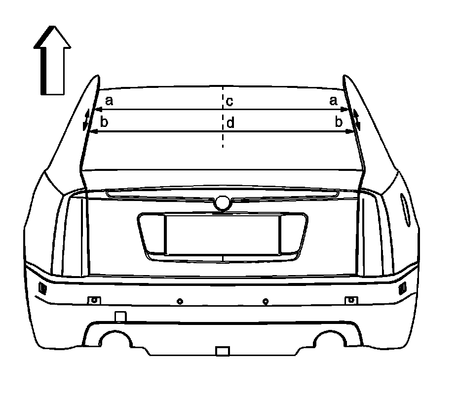 4. Mark two points (a, b) on the left side of the rear window glass from the roof sheet metal using an erasable marker or chalk. Measure the same distances on the opposite side from the roof sheet metal and draw two lines across the rear window glass connecting points a and b.