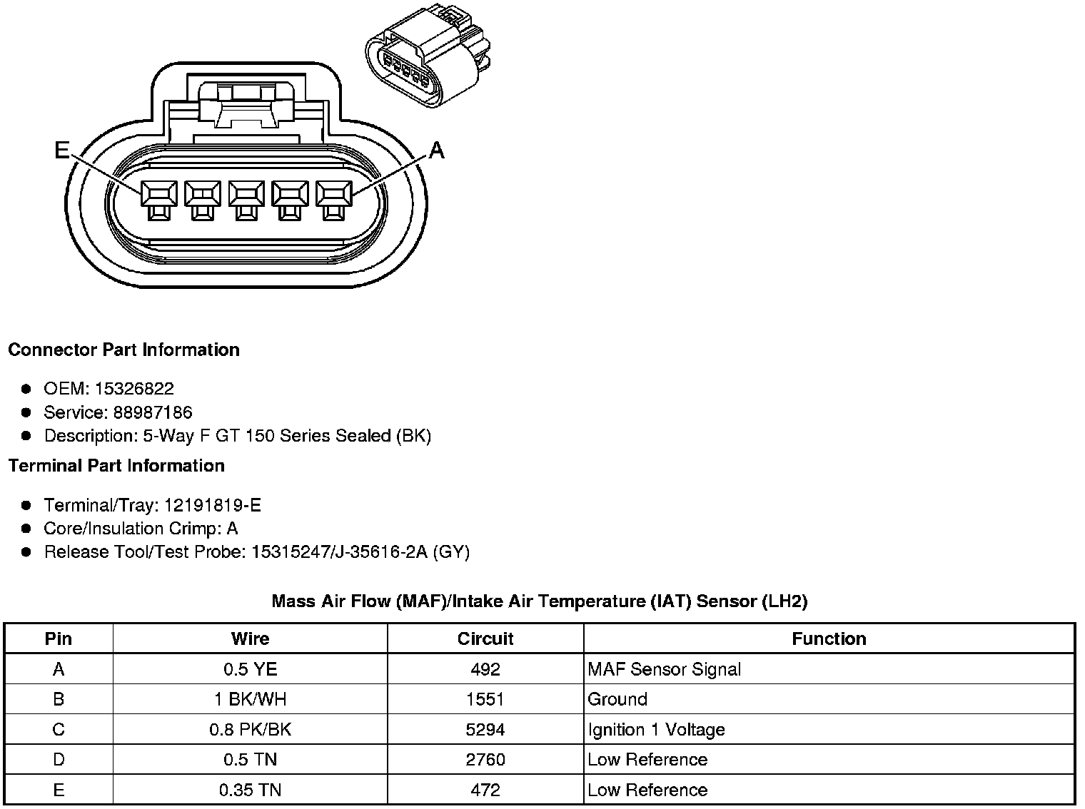 Mass Air Flow (MAF)/Intake Air Temperature (IAT) Sensor (LH2)