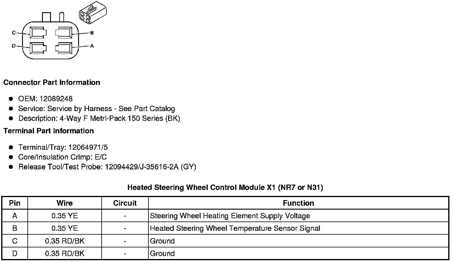 Heated Steering Wheel Control Module X1 (NR7 or N31)