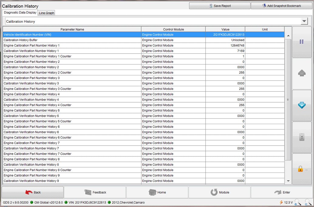 Select: Calibration History from the drop down menu in order to display the following items on the screen, including the VIN: