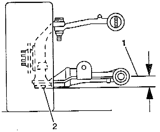 4. Measure the rear spring stud heights (1), the maximum difference should be 5 mm (0.196 in).