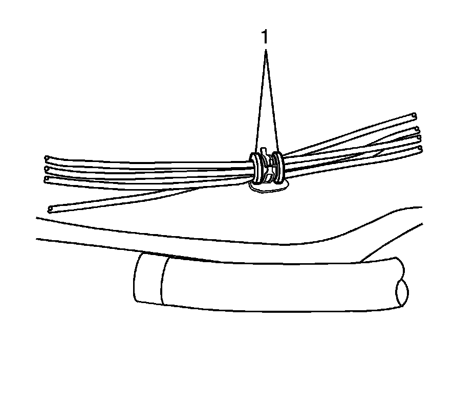 15. Install the hydraulic hoses in the fold-over clips (1) on the rear end panel. Fold the clips over to retain the hydraulic hoses.
