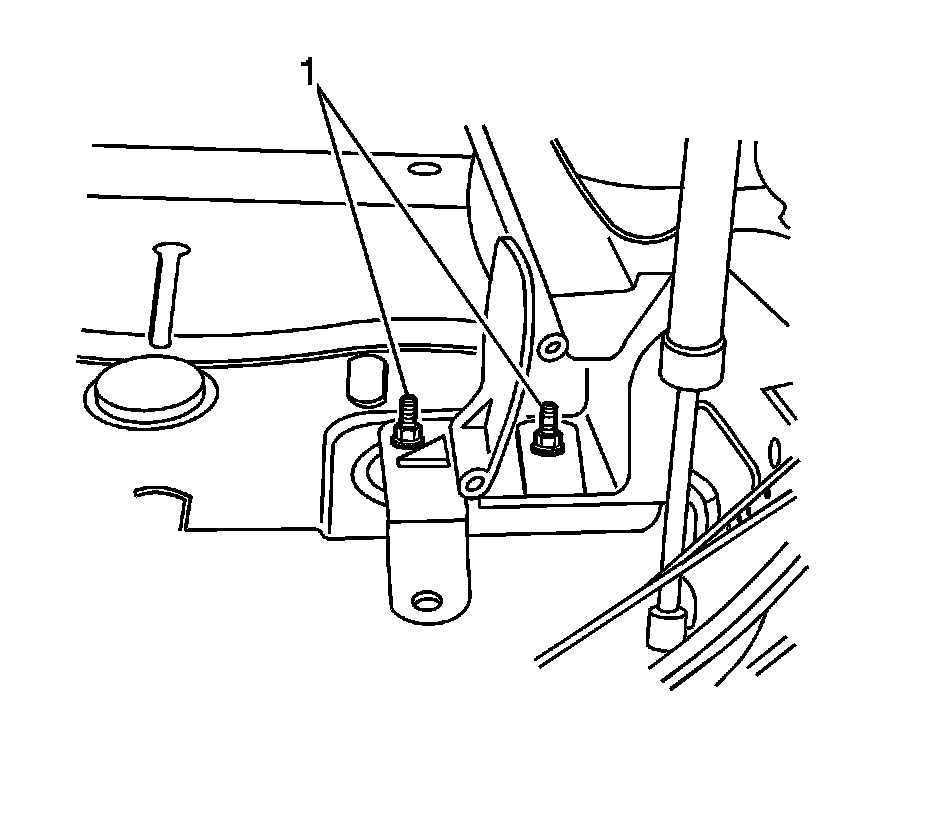 18. Remove the roof support bracket bolt (1).