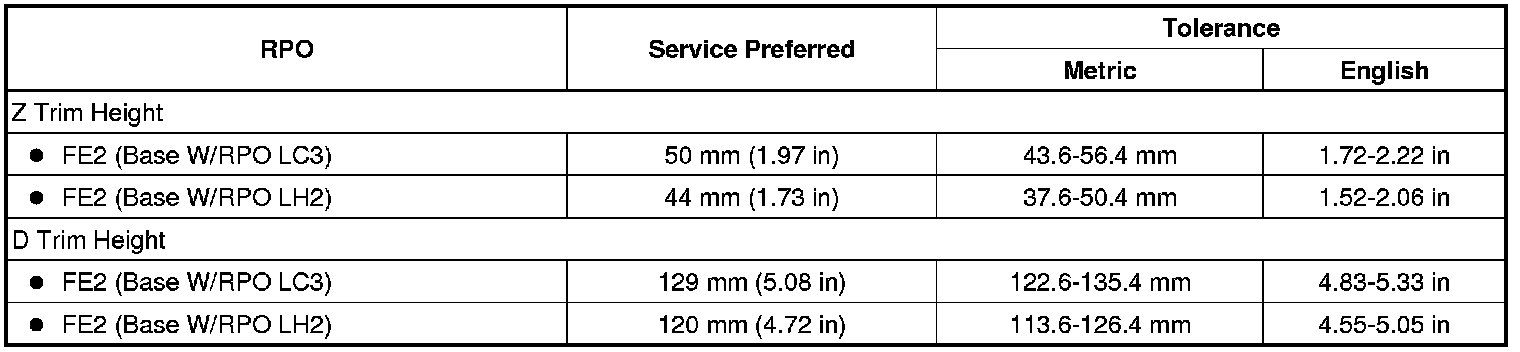 Trim Height Specifications