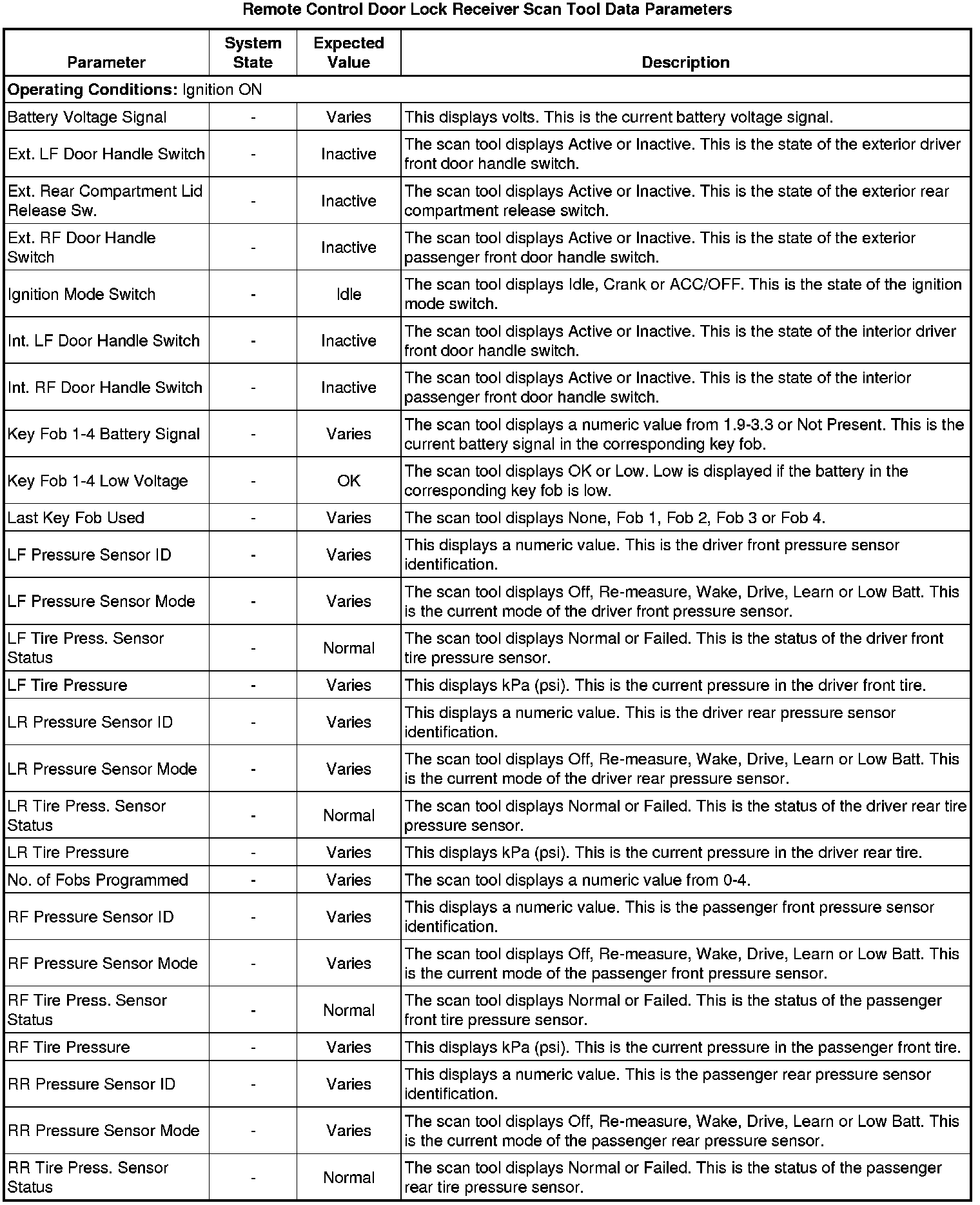 Door Lock Receiver Scan Tool Information