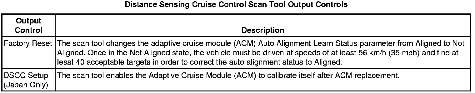 Cruise Control Module with Distance Sensing Scan Tool Information